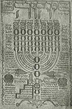 Амулет с охранительной формулой, написанной вокруг меноры, а также с текстом из книги Исход, 25, 38. Еврейская энциклопедия (СПб., 1908–1913).