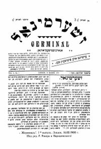Первой еврейской газетой, в редакцию которой вошли анархисты, был ежемесячник «Арбетер фрайнд» (Лондон, 1885, чисто анархистским стал весной 1892 г., выходил с перерывами до 1932 г., тираж — четыре тысячи экземпляров, главный редактор — Р. Рокер), являвшийся органом основанной в 1902 г. Федерации говорящих на идиш анархистов Великобритании и Франции. При редакции «Арбетер фрайнд» существовало издательство, публиковавшее в 1904–14 гг. еврейскую литературу, анархистскую классику и произведения американских, европейских и русских писателей в переводе на идиш (общий тираж — 80 тыс. экземпляров). В Англии на идиш издавался также теоретический журнал международного еврейского анархизма — «Жерминаль» (1900–1909, редактор — Р. Рокер).