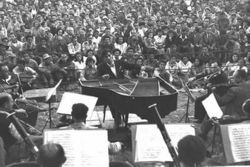 Л. Бернстайн выступает с Израильским филармоническим оркестром. Беер-Шева, 1948 г. Фото Х. Мендельсона. Государственное бюро печати. Израиль.