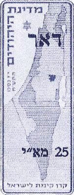 Марка Еврейского национального фонда с надпечаткой דואר («почта») и указанием стоимости[1]. Коллекция П. Хейна. Иерусалим.