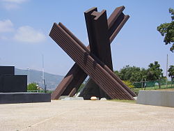 Памятник в Кирьят-Тивон, где был один из запланированных узлов сопротивления нацистам - гигантский противотанковый ёж, напоминающий о программе «Последняя крепость»