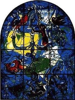 «Двенадцать колен Израилевых» (Дан). М. Шагал. Витражи для синагоги медицинского центра «Хадасса». 1960-62. Иерусалим.