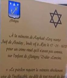 В 1670 году в Глатини пропал ребёнок. Еврея Рафаэля Леви, торговца скотом из соседней деревни Булаи, обвинили в похищении и ритуальном убийстве. Его пытали, осудили и сожгли на костре в Меце.