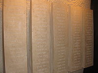 Мемориальные плиты с именами погибших жителей Кфар-Эциона в местном музее