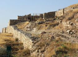 В пластах израильского периода до разрушения Первого храма обнаружены фундаменты и части городских ворот (24,5 × 25 м, быть может, самых массивных городских ворот той эпохи), двойной системы стен толщиной в 6 м, а в центре города — руины дворца-цитадели (8 в. до н. э.) — самого крупного из известных в Эрец-Исраэль того периода (76 × 36 × 12 м). Найден кувшин конца этого периода, на ручке выдавлено клеймо с именем Гдалия (очевидно, Гдалия бен Ахикам).