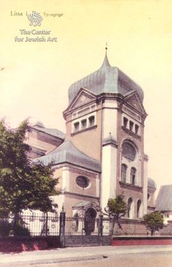Синагога в Лиссе до Первой мировой войны. Старинная открытка.