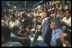 Руководство Ликуда и активисты входящих в этот блок партий ожидают результатов выборов в Кнесет 12-го созыва (1 ноября 1988 г.). Фото Магги Аялон. Государственное бюро печати. Израиль.