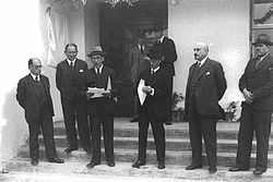 Артур Рупин (первый слева) на торжественном открытии почвоведческой лаборатории в сельскохозяйственной опытной станции (ныне - институт Волкани).