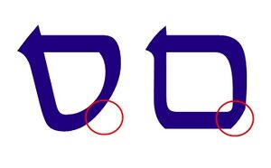 Следует отличать букву самех от схожей буквы мэм-софит — см. рисунок справа.
