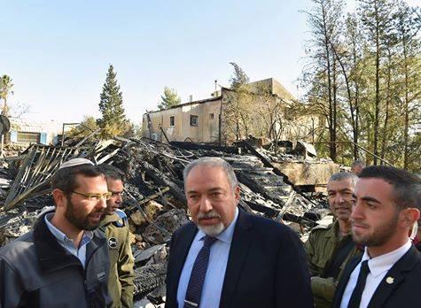 Министр обороны Либерман в Халамише после пожара в ноябре 2016 года.