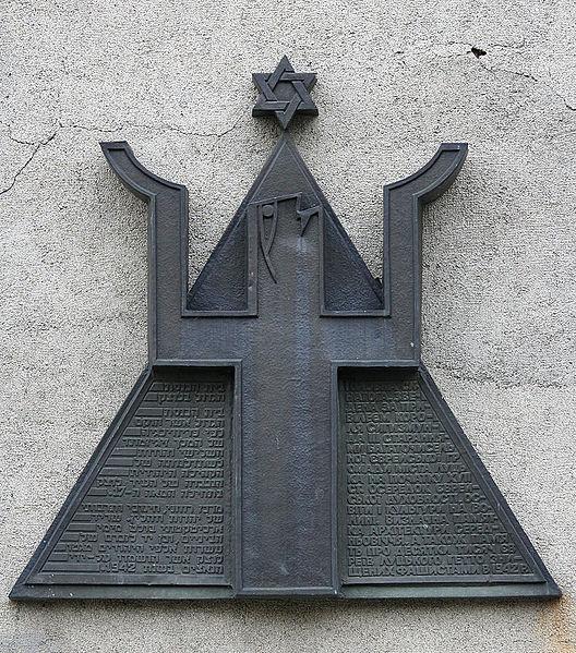 Памятный знак о погибших в Холокосте на стене луцкой Большой синагоги.