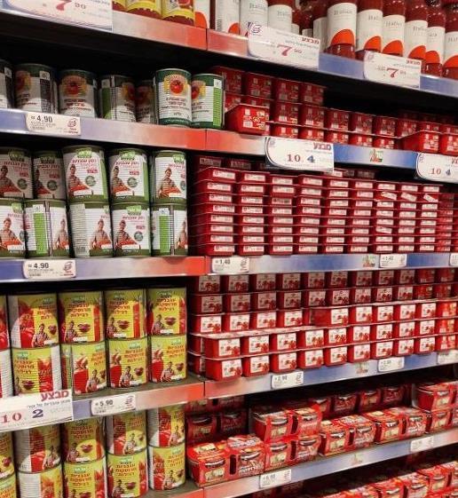 Томатные консервы в израильском супермаркете.