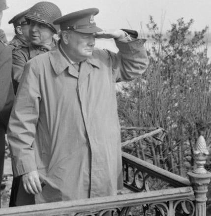 Черчилль наблюдает за переправкой боевой техники через Рейн. 1945 год.