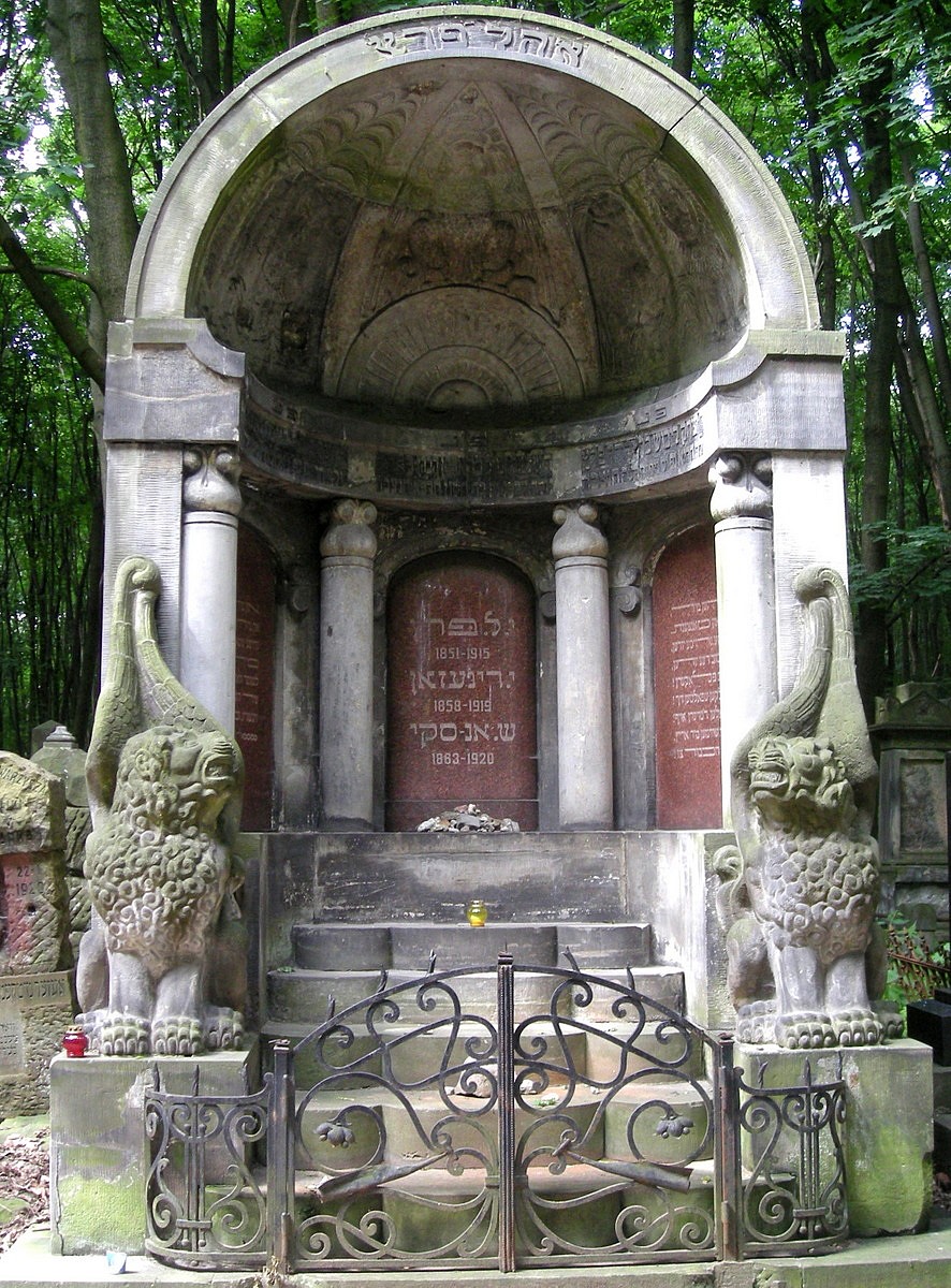 «Мавзолей трех писателей» – общая могила Ан-ского, Я‘акова Динезона и Ицхака Лейбуша Переца на еврейском кладбище в Варшаве. Фото: Ш. Кидрон, 2015 г.