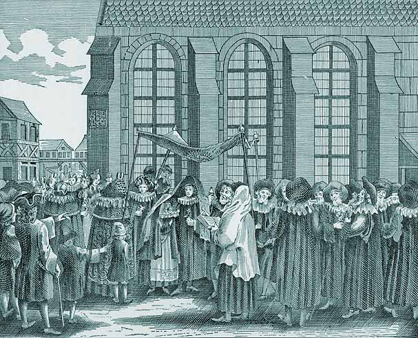Свадебная церемония у евреев. Нюрнберг. Начало 18 в. Из книги Кирхнера «Еврейские обряды», 1726. Jewish Encyclopedia (1901–1912).