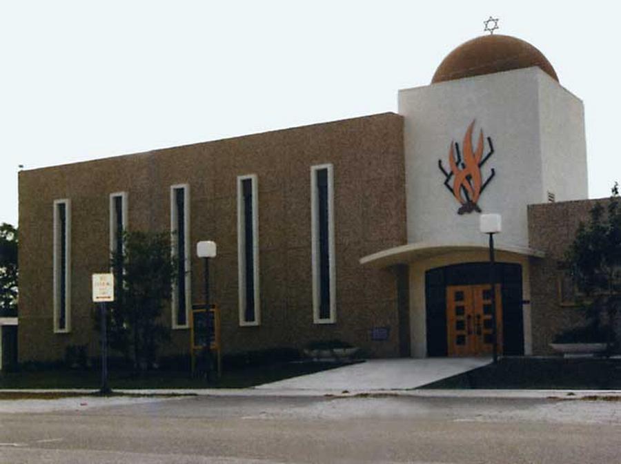 Синагога в поселке Скай-Лайк близ Майами-Бич. Построена в 1978 г. Из книги М. Наора «Еврейский народ в 20 веке. История в фотографиях», Иер.-Т-А, 2001.