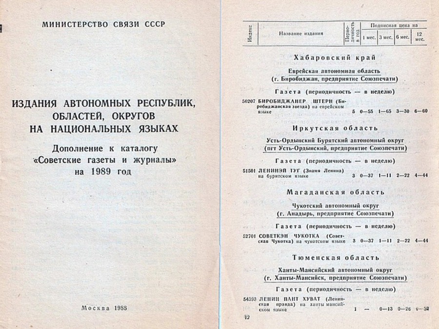 Газета «Биробиджанер Штерн» (на языке идиш) в каталоге советских периодических изданий на национальных языках. Москва, 1988.