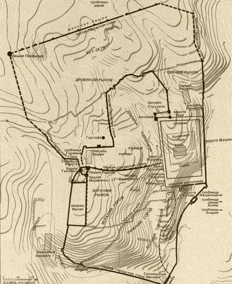 Иерусалим периода Второго храма. Д. Бахат. «Исторический атлас Иерусалима». Издательство «Карта». 1980. Иерусалим.