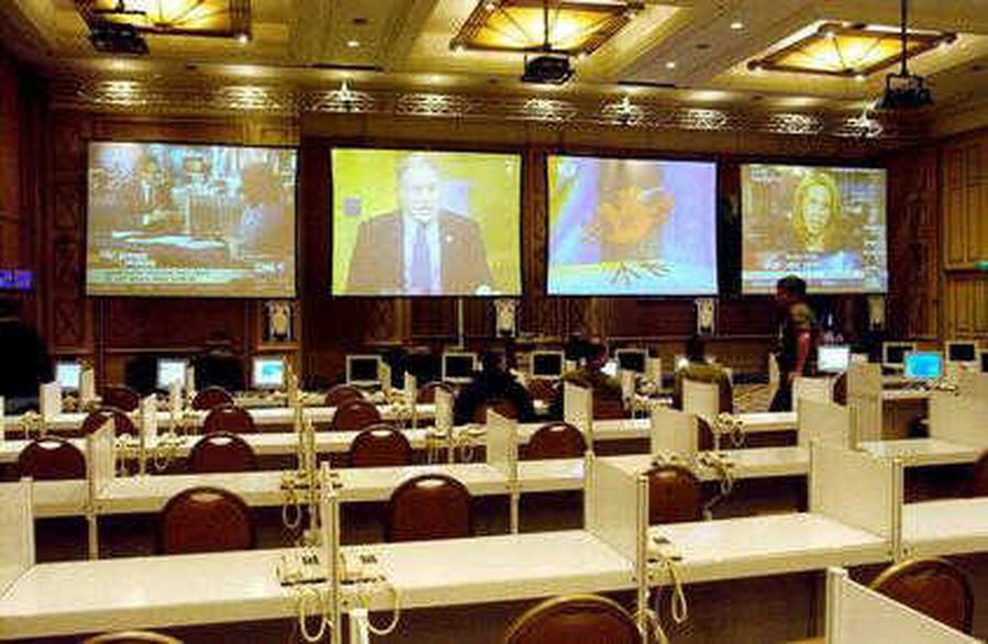 Информационный центр для иностранных журналистов в Тель-Авиве во время второй войны в Персидском заливе (2003 г.). Фото М. Мильнера. Государственное бюро печати. Израиль.
