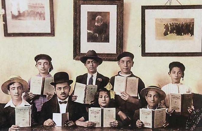 Преподаватель иврита И. Бральи с членами сионистской группы в г. Ла-Гулетт (Тунис). 1920-е гг. Из книги М. Наора «Еврейский народ в 20 веке. История в фотографиях», Иер.-Т-А, 2001.