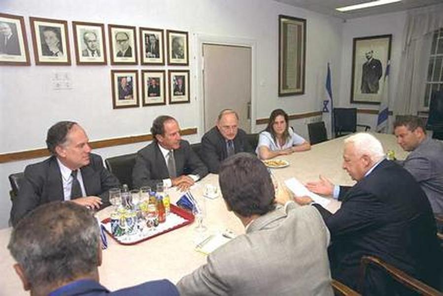 Встреча премьер-министра Израиля А. Шарона с руководителями Конференции президентов еврейских организаций США; слева направо: Р. Лаудер, М. Цукерман и М. Хеленлейн. 2001 г. Фото М. Мильнера. Государственное бюро печати. Израиль.
