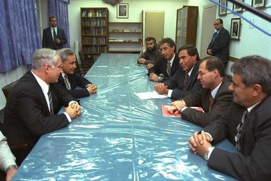 Премьер-министр Израиля Б. Нетанияху встречается с главами арабских местных советов в Израиле. 1997 г. Слева – М. Кацав. Фото М. Мильнера. Государственное бюро печати. Израиль.