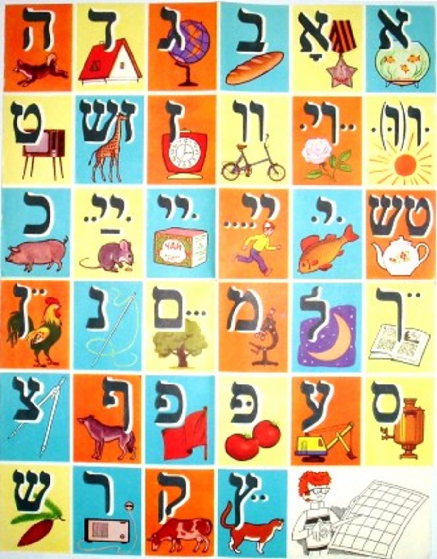 Разрезной алфавит из букваря на языке идиш. Х. Бейдер, С. Сандлер и др., «Хабаровское книжное издательство», 1982.