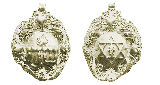 Серебряный медальон со словом «Шаддай» (שדי - `Всемогущий`) на лицевой стороне и Маген-Давидом с лилией на оборотной. Еврейская энциклопедия (СПб., 1908–1913).