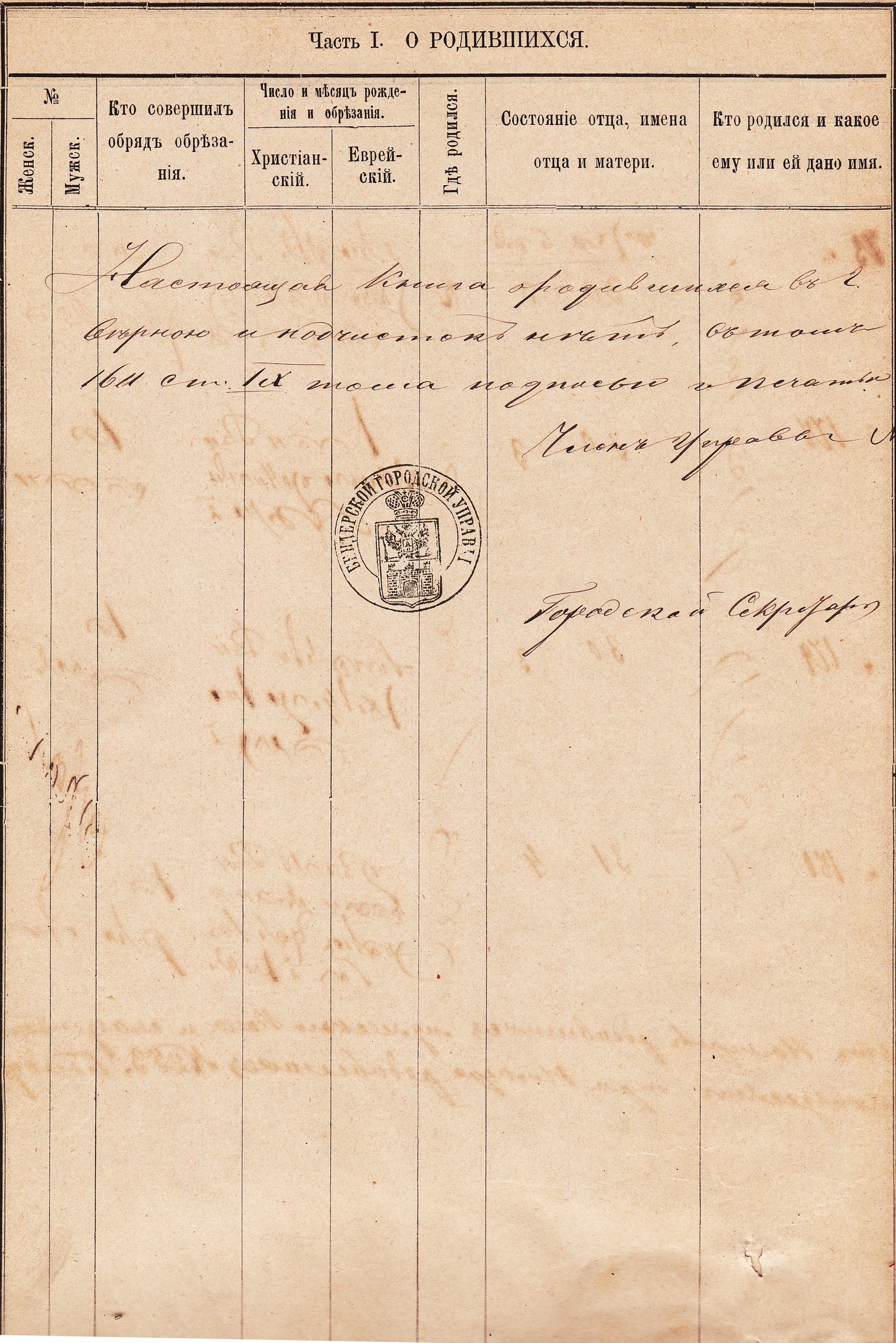 Книга записи родившихся евреев города Бендеры за 1882 год