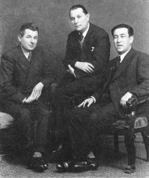 Слева направо: писатели Мойше Альтман, Янкев Штернберг и Шлоймэ Бикль.