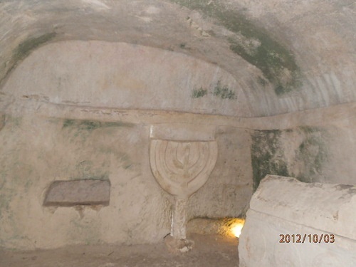 Некрополь Бейт Шеарим. Погребальная камера с мнорой. Фото д-ра Александра Луговского.