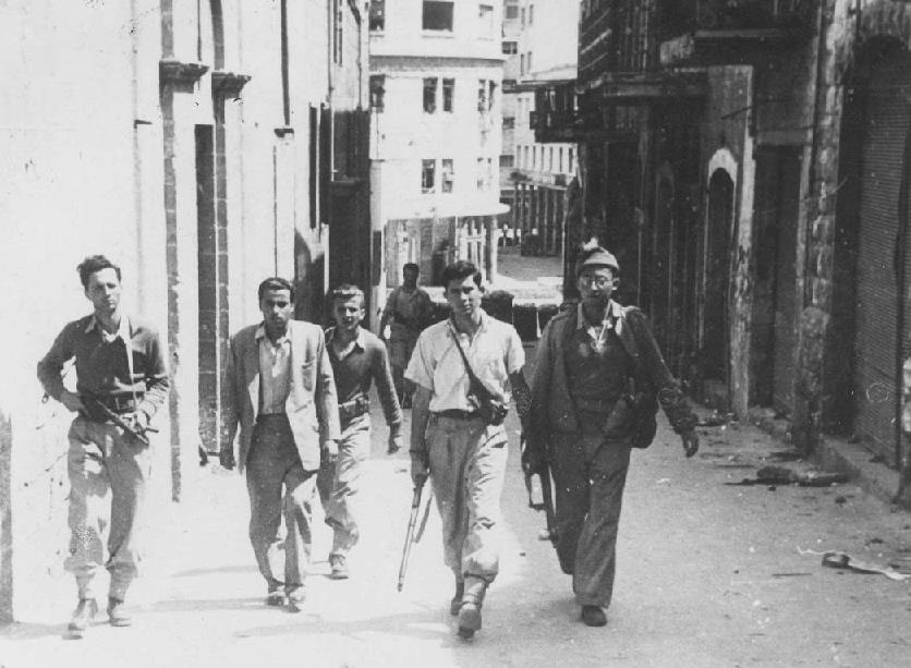 Еврейские бойцы на улице Хайфы 21 апреля 1948 г.