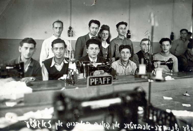Еврейский портновский кооператив в Загоре Шлёнской (Zagorze Slaskie) в Польше в 1946 году. Фото с [сайта "Центропа".]