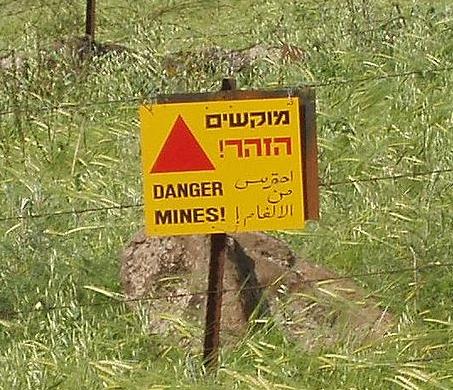 Предупредительный знак на минном поле на Голанах.