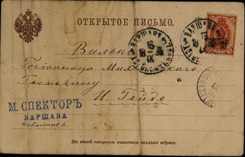 Открытка Бернарду Горину от варшавского издателя Спектора. Фото из коллекции YIVO.