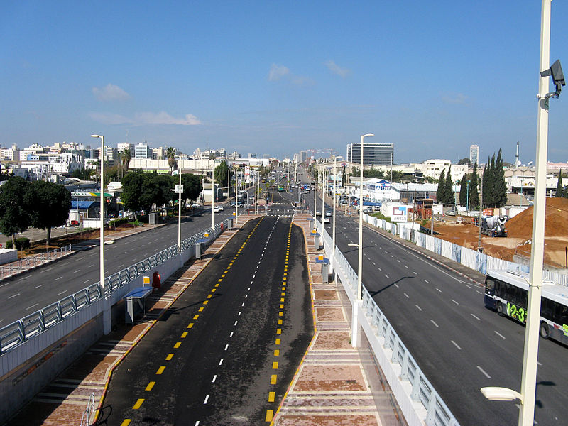 Полоса общественного транспорта в Петах-Тикве на улице Жаботинсого.