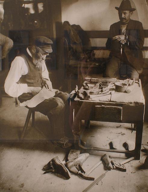 Еврейский портной в Кременце. 1914 год. Волынская губерния, г. Кременец. Фото С. Юдовина. Копия; оригинал хранится в Российском этнографическом музее, Санкт-Петербург.