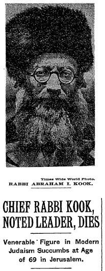 Объявление о смерти рава Кука в "Нью-Йорк таймс"