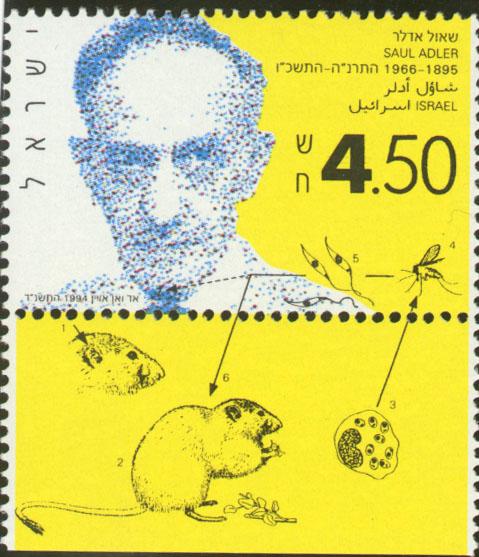 Израильская почтовая марка с портретом профессора Адлера