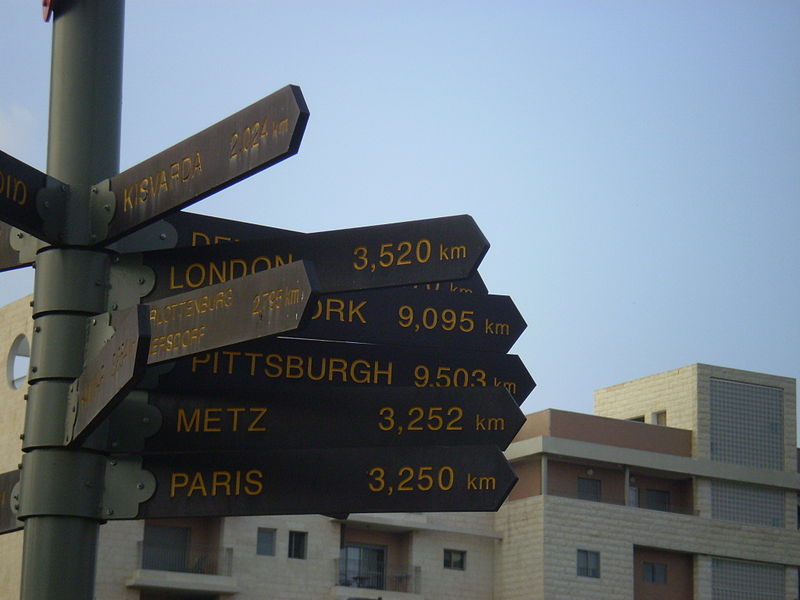 Указатель расстояния до Питсбурга в Кармиэле, Израиль.