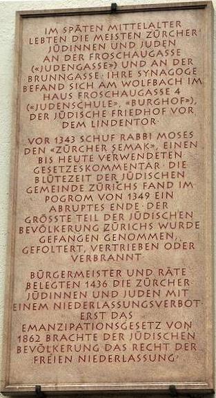 Мемориальная доска на Синагогенштрассе в Цюрихе.