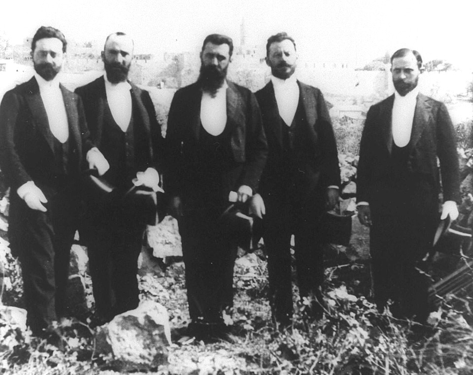 Сионистская делегация в Иерусалим, 1898. Справа налево: Йосеф Сейднер, Мозес Т. Шнирер, Теодор Герцль, Давид Вольфсон, Макс Боденмейер