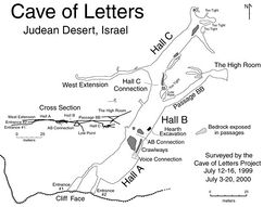 В пещере, названной «пещерой писем», было обнаружено 15 писем Бар-Кохбы руководителям повстанцев в Эйн-Геди. Она была исследована Ядином в 1960–61 гг. Ее длина около 150 метров, находится она на 100 метров ниже плато и на высоте около 200 метров над дном ущелья.