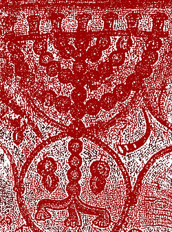 Мнора с этрогами под ней - мозаика из синагоги VI века в Негеве.