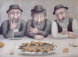 Субботняя трапеза. Картина Владимира Любарова из серии «Еврейское счастье»