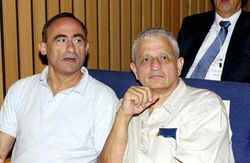 Политические обозреватели газеты «Иеди‘от ахаронот» Н. Барнеа (справа) и Ш. Шиффер (2003 г.). Фото М. Мильнера. Государственное бюро печати. Израиль.