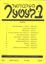 | 12:50, 28 февраля 2011 | Ayzenbud2.jpg (файл) | 187 КБ | Обложка журнала "Ундзер геданк", Мельбурн, сент. 1997 г. (Номер посв. столетию Бунда.) Category:Журналы_на_идише | 1 | |