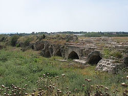 Низкий акведук вел воду от речки Зарка. В этих местах видны остатки гидравлических сооружений. Зарка была перегорожена двумя плотинами - в долине Кабара и около Тель Шореш, там где кибуц Мааян Цви. Этот акведук служил и позднее крестоносцев.