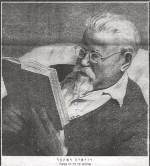 Еврейские анархисты в Лондоне представили мне своего руководителя, учителя и ребе, Рокера. Несколько часов я беседовал с ним, и он произвёл на меня лучшее впечатление, чем все анархисты, с которыми я встречался в течение жизни. Рокер - не-еврей, христианин, немец, из Рейнской области... Он производит впечатление очень здорового духом и телом человека... Прекрасный литературный язык... Красивый голос... Он отличный оратор, не имеющий никакого желания покрасоваться перед собеседником. Прирождённый оратор и интересный человек. Он гой, в его сердце нет ни капли еврейской крови, и в прежней жизни своей он не встречал евреев. При его превращении в отличного и учёного анархиста он учил еврейский жаргон, чтение и письмо на нём, и сейчас является редактором анархистского еженедельника на идиш. Он уже напечатал и распространил несколько больших книг в переводах с нескольких языков (так как знает многие языки). Переводил на идиш крупнейшие труды Кропоткина и Элизе Реклю, так же как и крупные научные работы других учёных - анархистов. Распространил перевод на идиш с немецкого книгу Ницше «Так говорит Заратустра». Рокер сказал мне, что выучил приблизительно сто пятьдесят слов на иврите, требующихся ему при издании газеты и книг на идиш. Он говорит на чистом, красивом и богатом немецком языке; он сказал мне, что в своих выступлениях перед обществом евреев-анархистов пользуется лёгким немецким языком с применением идишских и иногда также ивритских слов. Передо мной он извинился: «Я могу писать на идиш, но мне труден разговор на этом языке. Это тяжело немцу по рождению…» Его жена - еврейка, происходящая из ортодоксальной религиозной семьи. Я говорил с ним несколько часов на темы анархизма. Его речь ясна и четка, он знаком с анархистской литературой, изданной на большинстве европейских языков. Рокер - гой - был первым «еврейским анархистом», у которого я нашёл глубокие и обширные познания в теории анархии... Объясняет он очень красиво... Ссылается на Макса Штирнера и считает его крупнейшим философом прошлого века, которого, к сожалению, до сих пор не исследовало и не изучало большинство мудрецов и мыслителей - как он того заслуживает. Его товарищи - еврейские анархисты - очень любят Рокера и называют его - в лицо - «рабби». И действительно, отношение еврейских анархистов в Лондоне к немцу-христианину Рокеру я нашёл в точности отношением хасидов к своему ребе, цадику. Рокер же относится к своим хасидам не как рабби, а как друг и товарищ.[4]